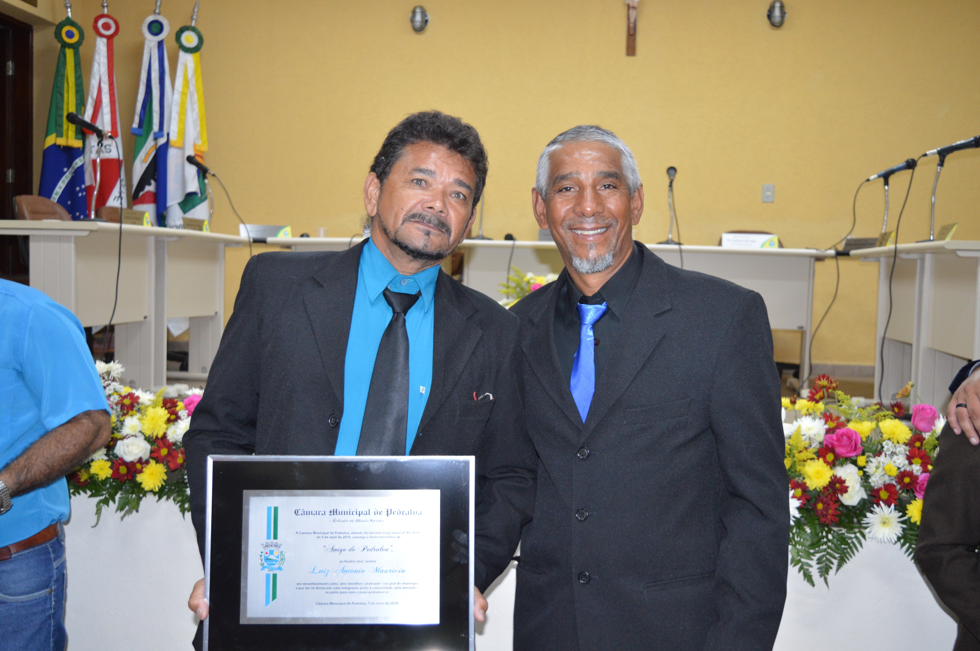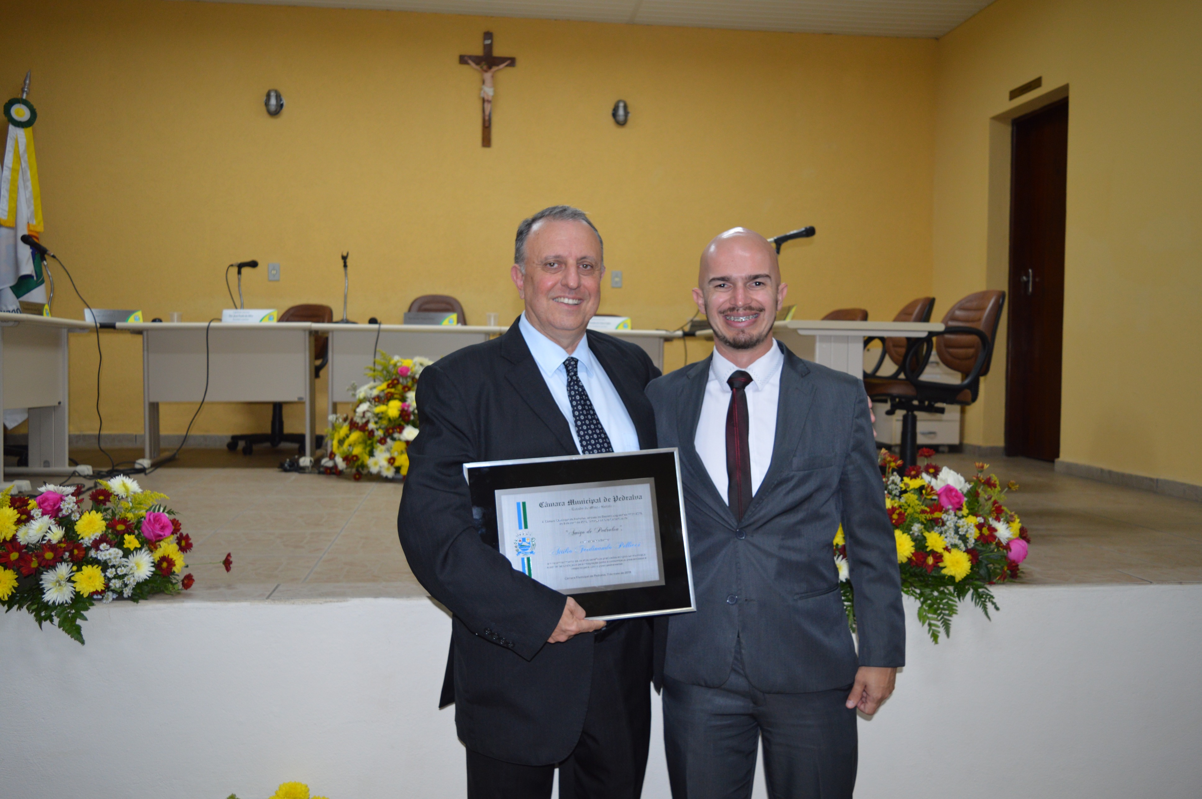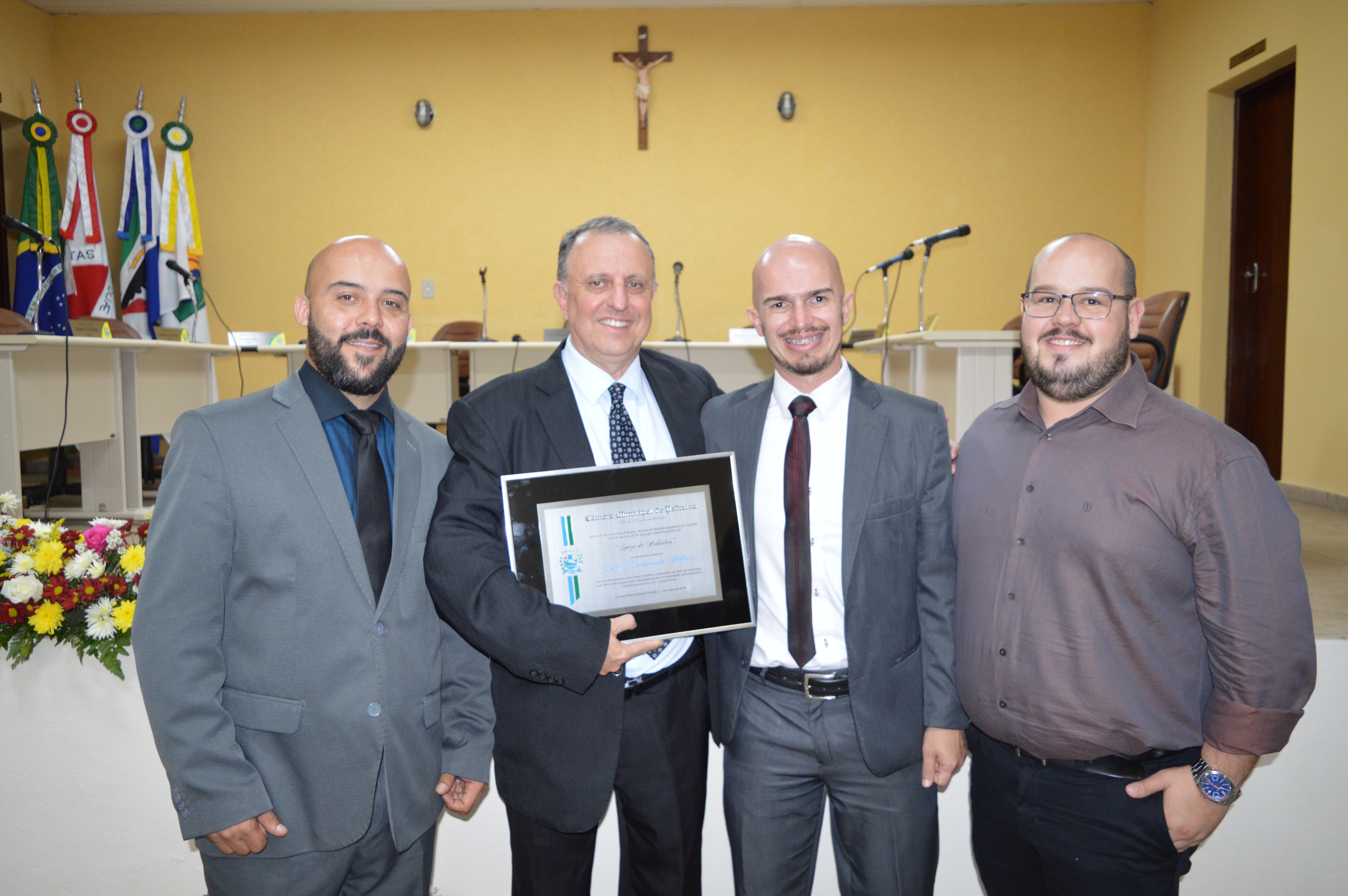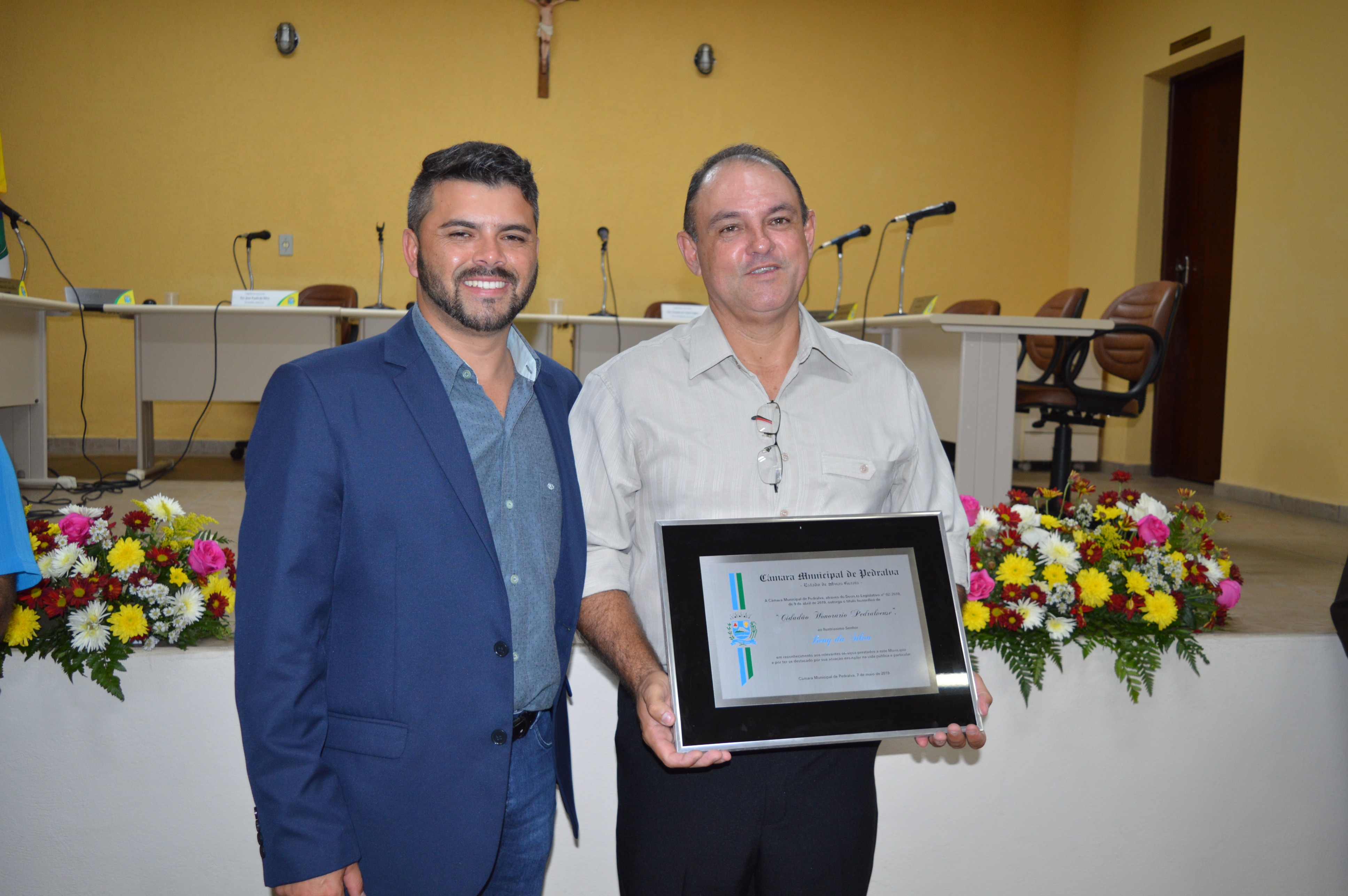 Entrega do título de Cidadão Honorário Pedralvense aos senhores Amauri Lopes de Lima, Beny da Silva e Natal Marcos Pereira; e do título de Amigo de Pedralva aos senhores Attilio Ferdinando Pellicci, Luiz Antônio Maurício e a senhora Irmã Rilvânia de Lurdes Carvalho.
