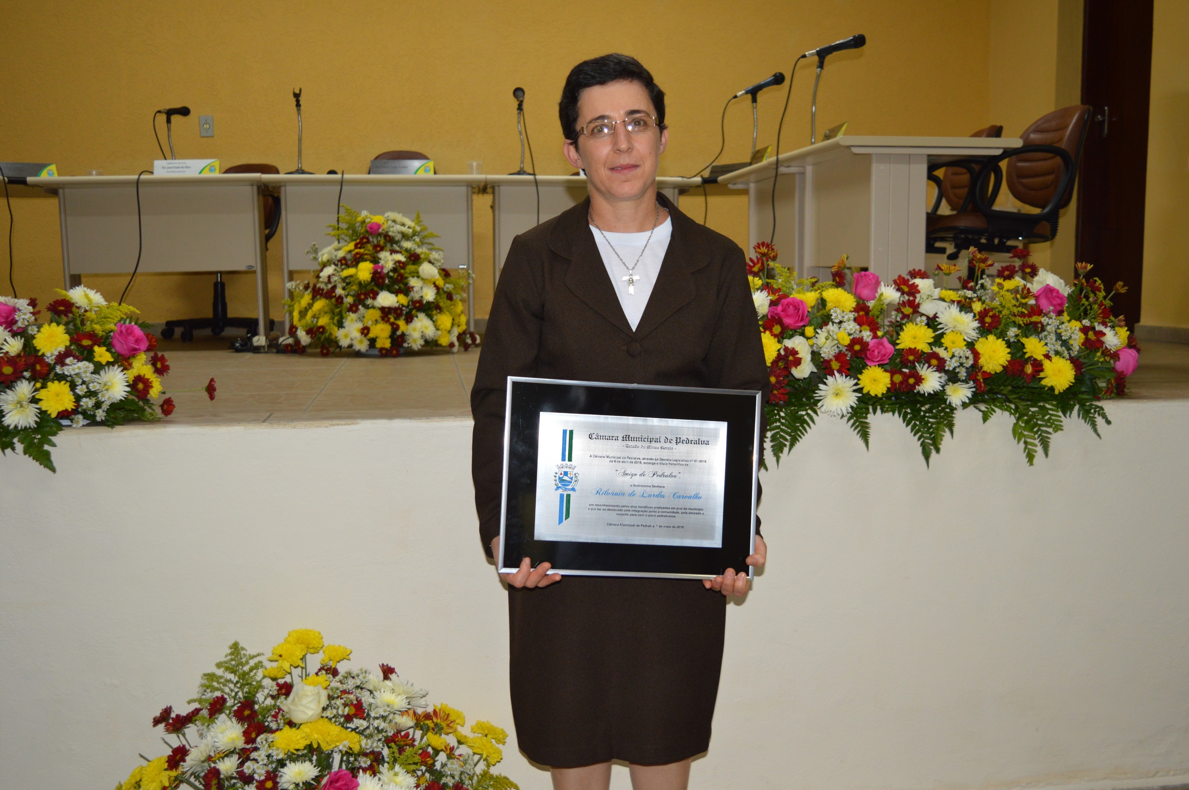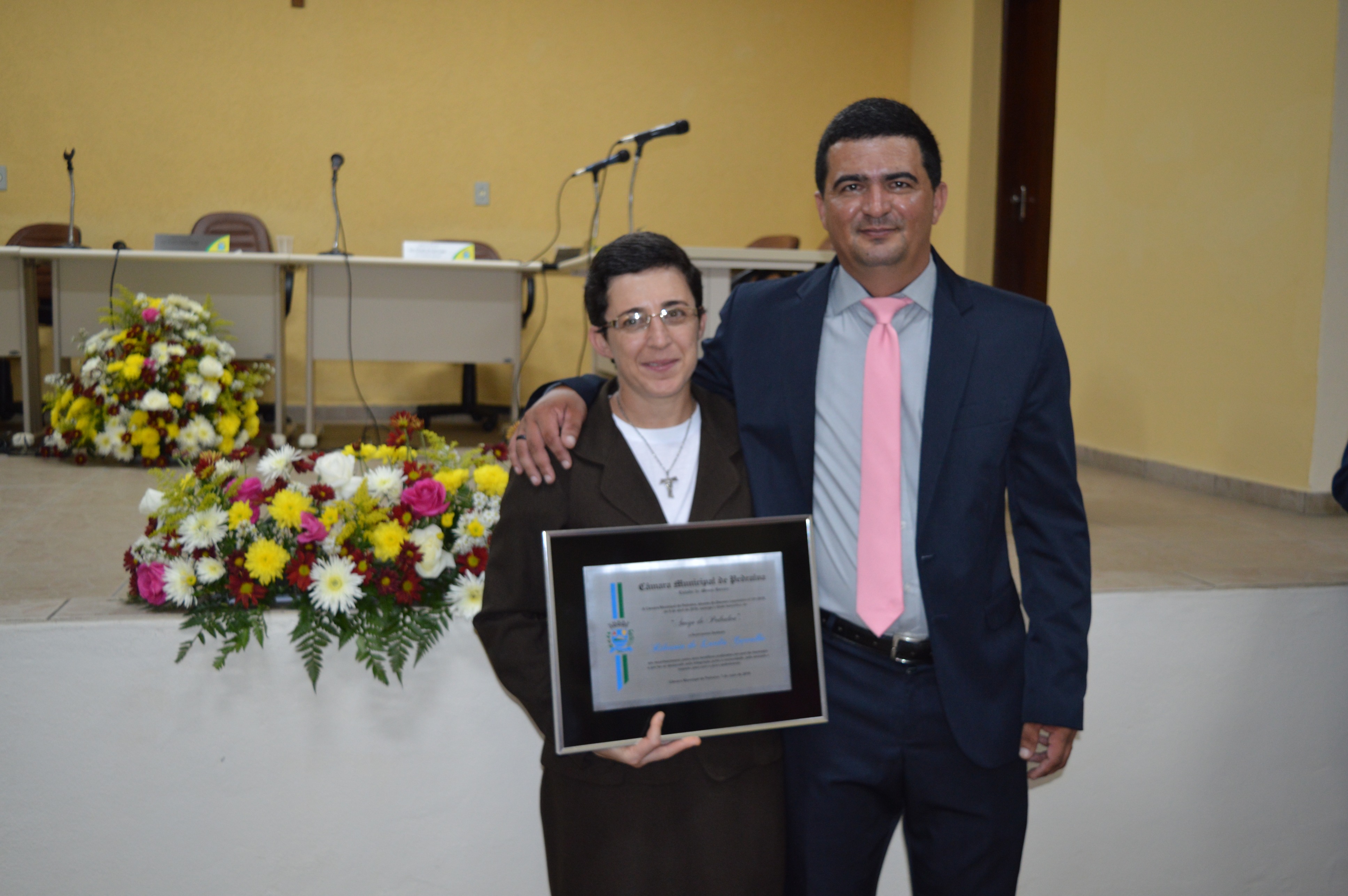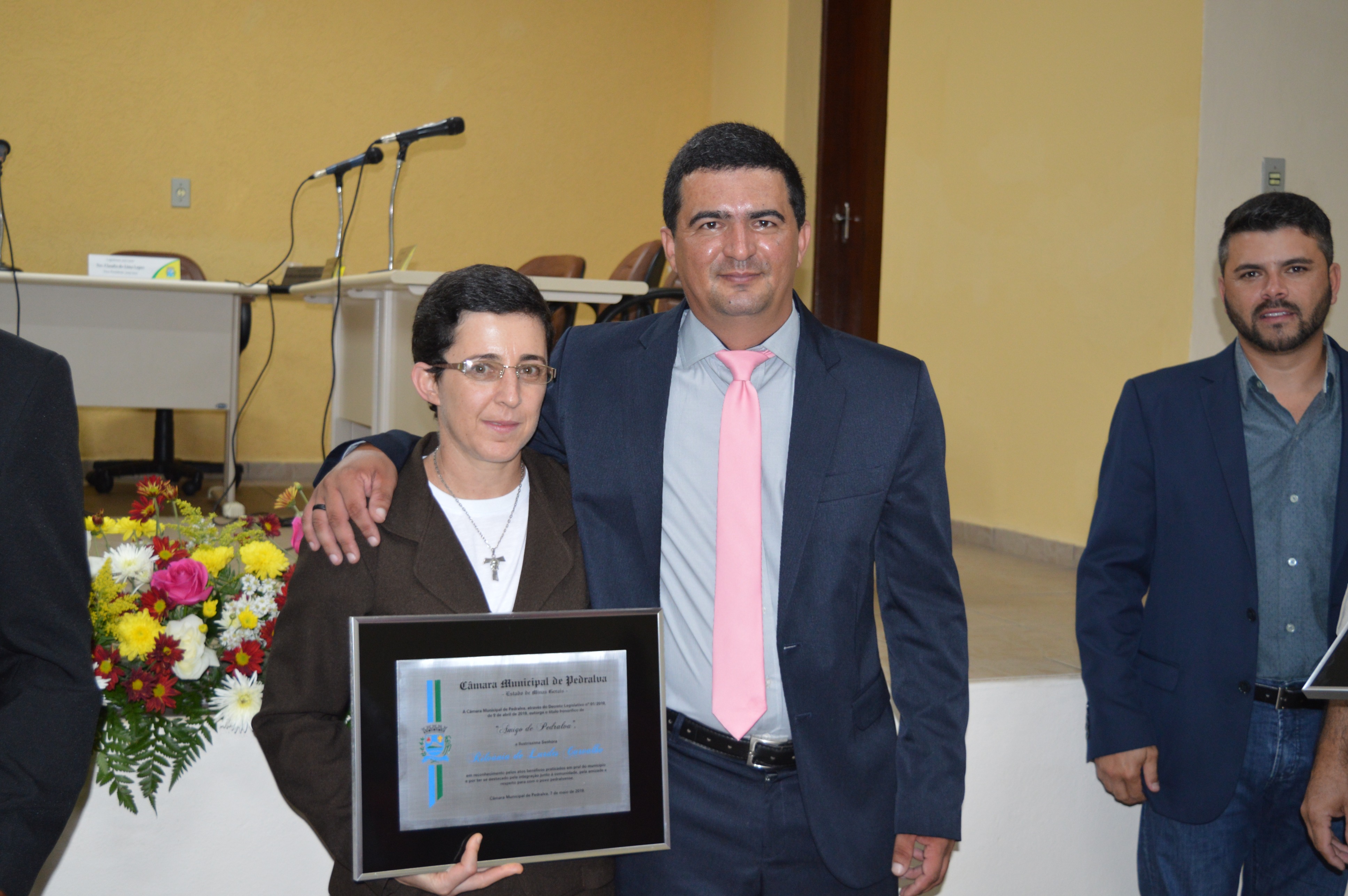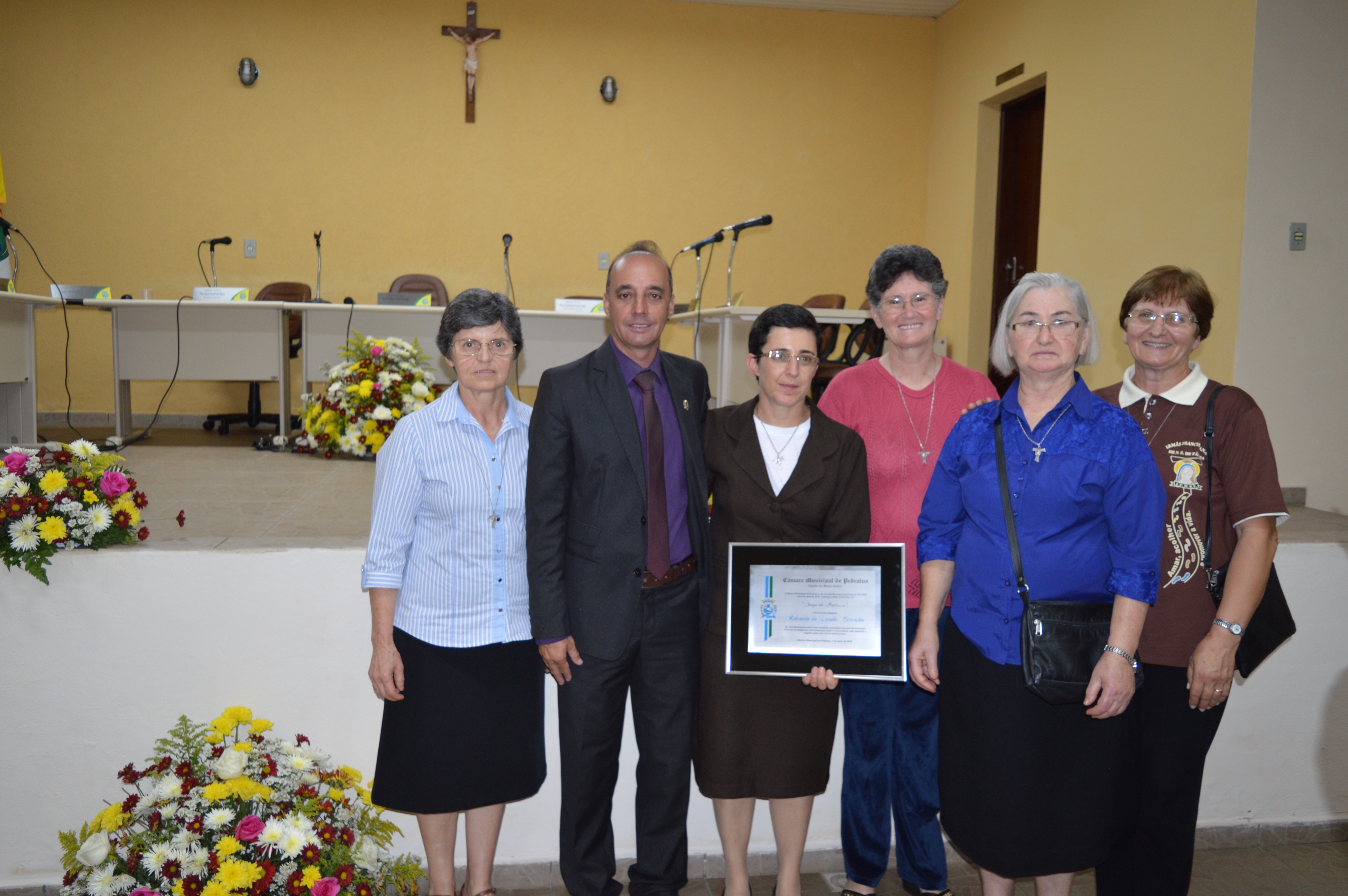 Entrega do título de Cidadão Honorário Pedralvense aos senhores Amauri Lopes de Lima, Beny da Silva e Natal Marcos Pereira; e do título de Amigo de Pedralva aos senhores Attilio Ferdinando Pellicci, Luiz Antônio Maurício e a senhora Irmã Rilvânia de Lurdes Carvalho.
