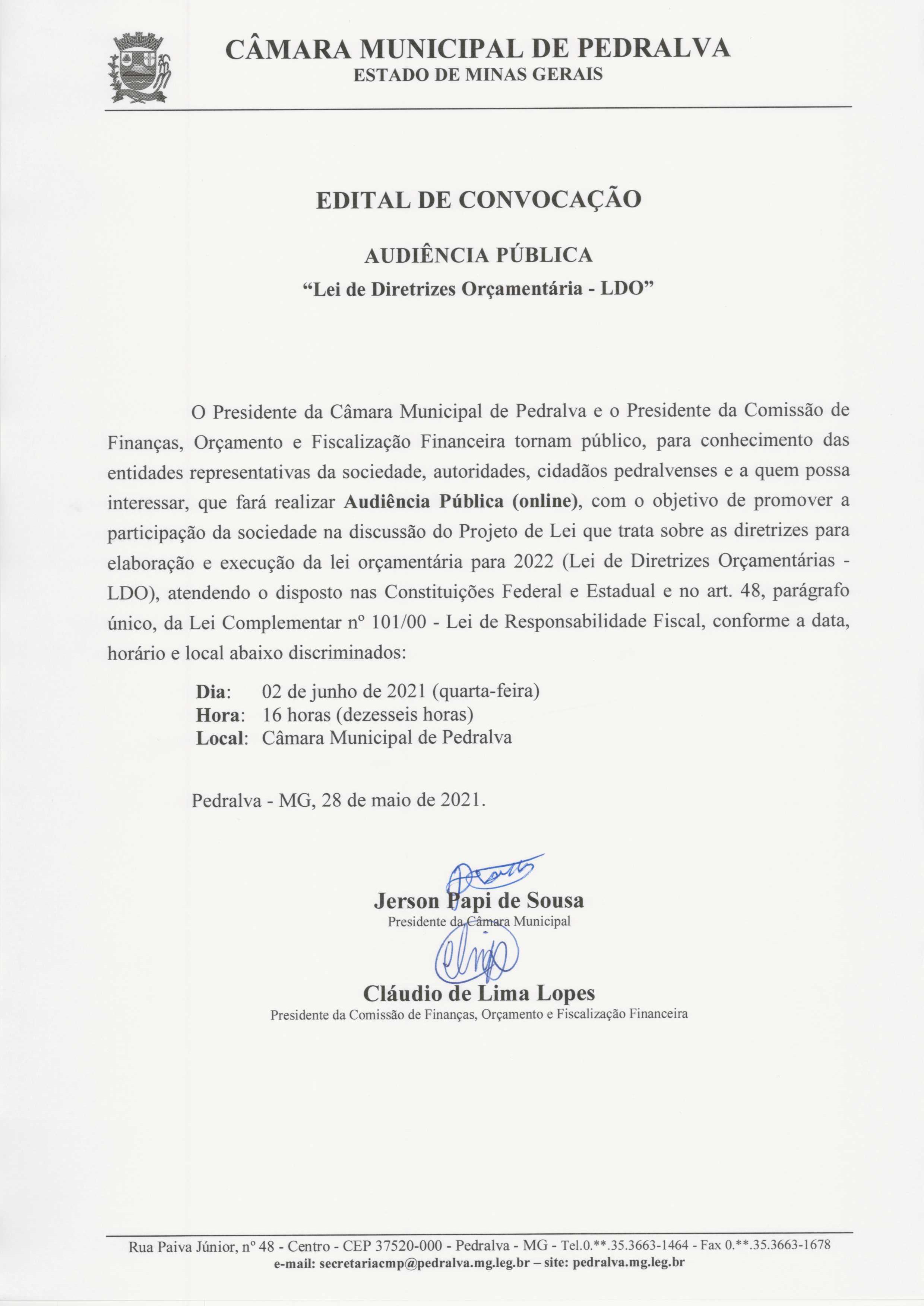 Audiência Pública para discussão da LDO - 2022