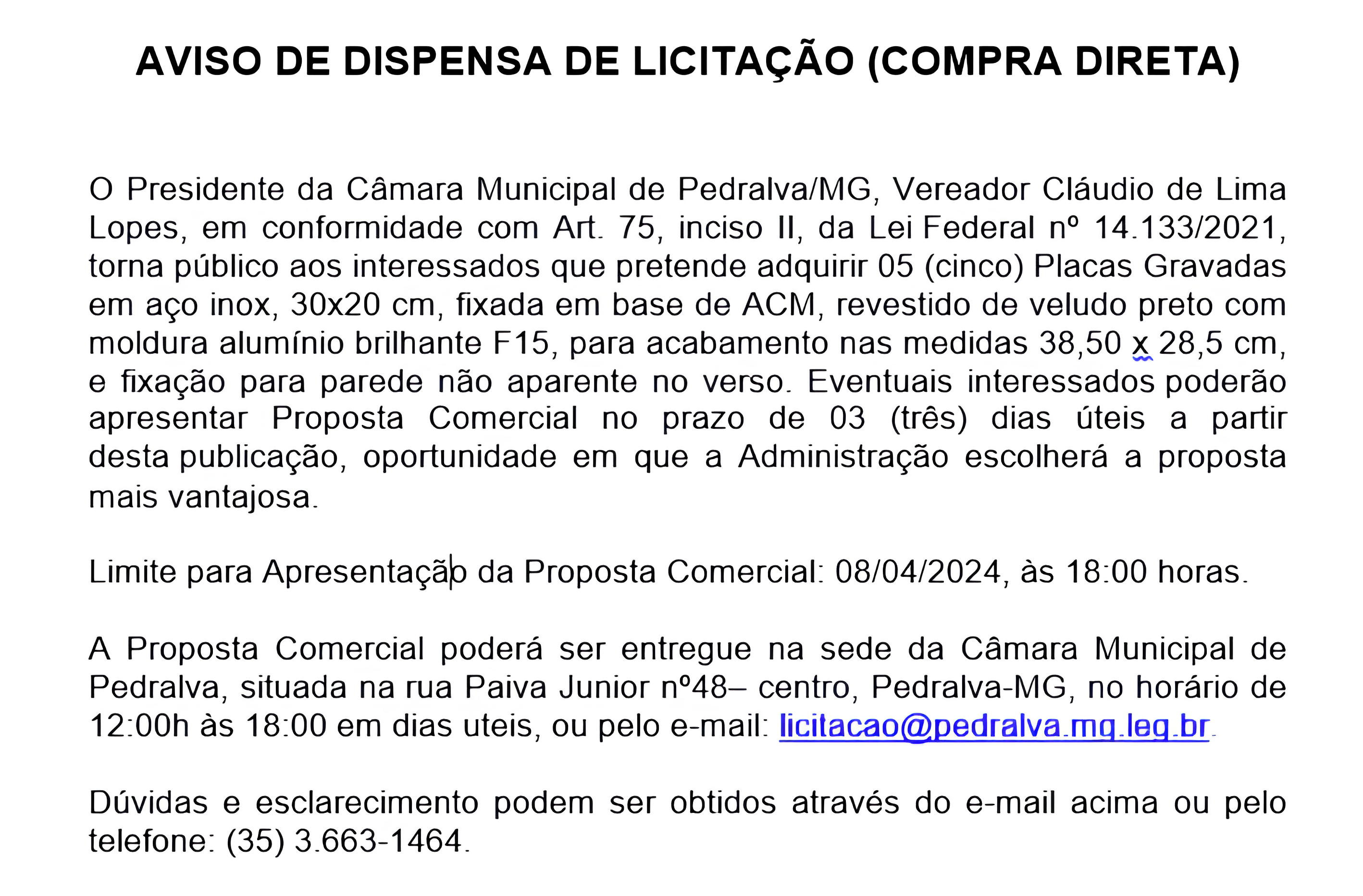Câmara Municipal de Pedralva-MG