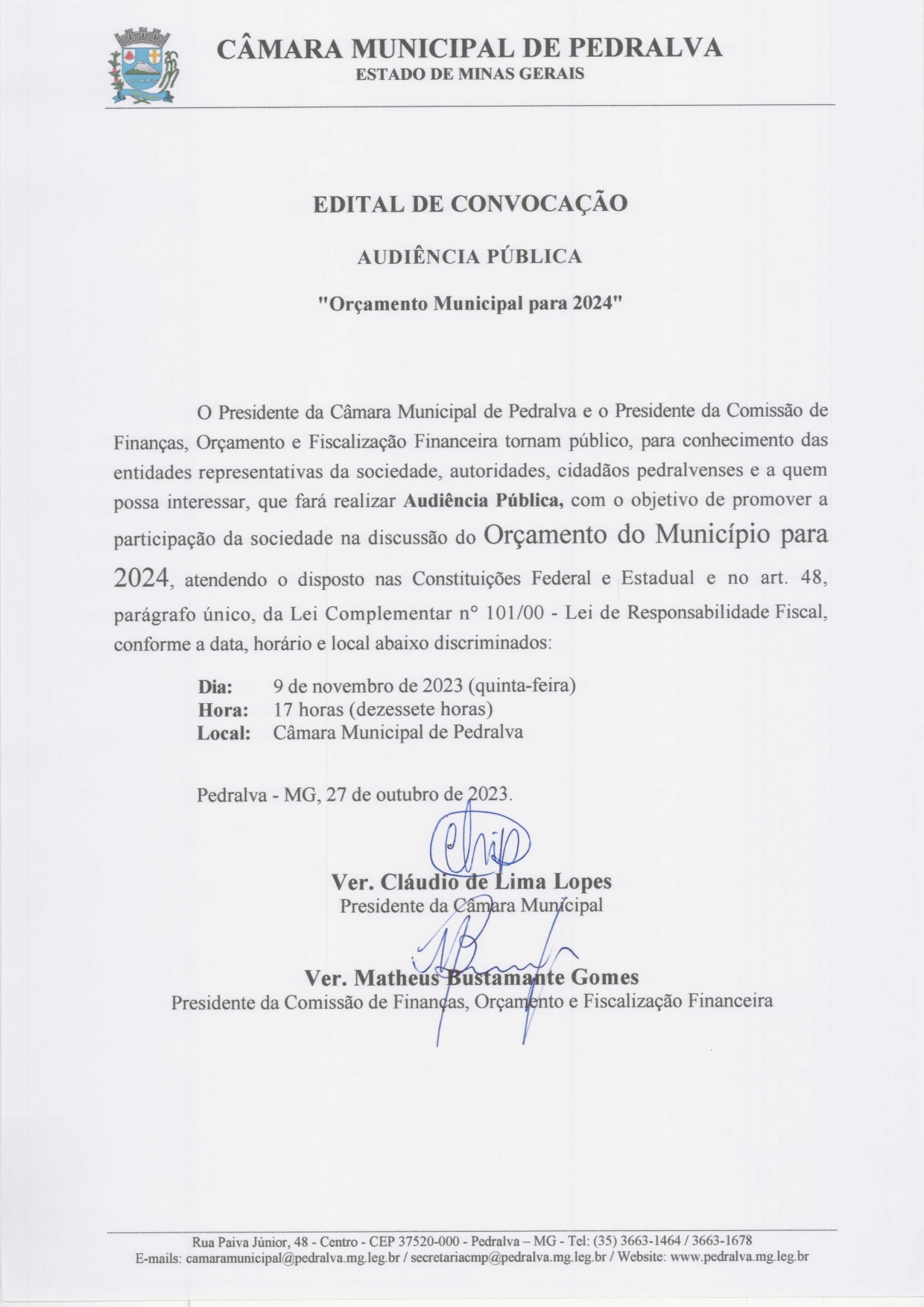 Câmara Municipal de Pedralva-MG